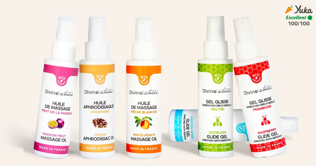 Divinextases, c’est la 1ère marque française de cosmétique érotique bio, fondée en 2011. Tous leurs lubrifiants sont :